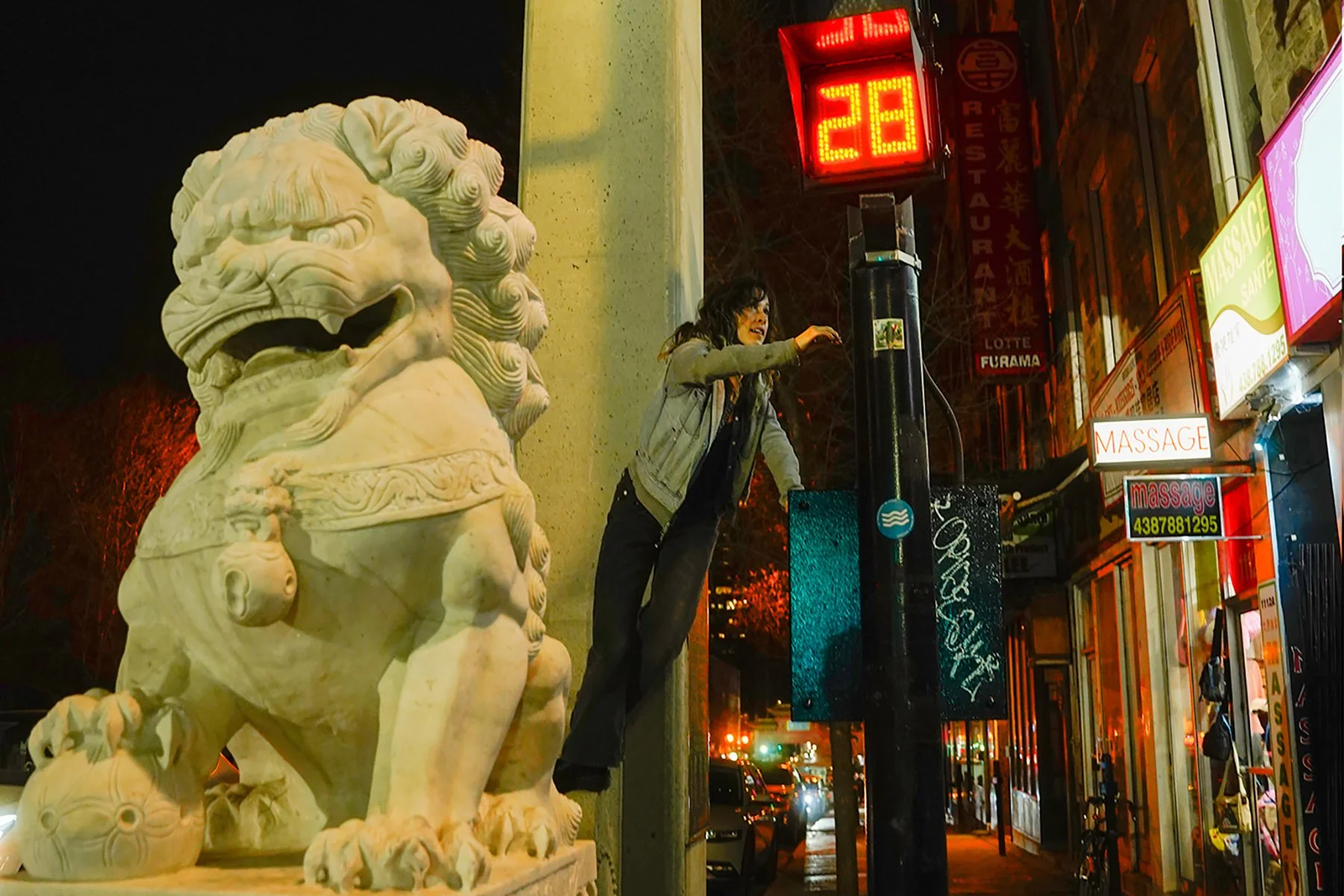 I met Valérie just outside Montréal's chinatown to see her in action putting up some vulvettes on the street.